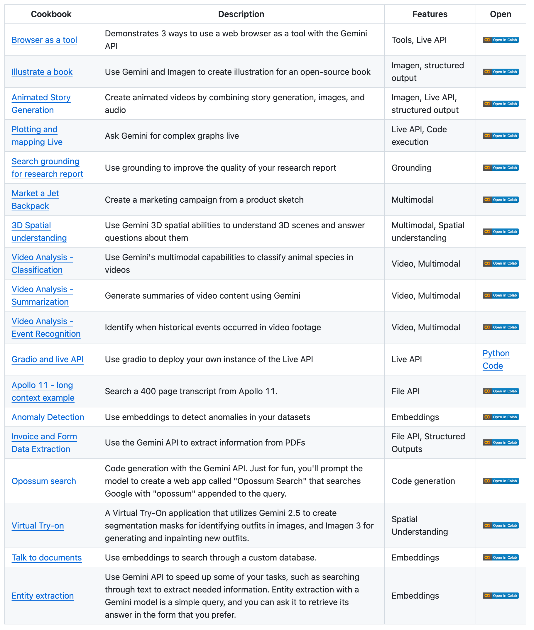 스타터 앱들은 재미있는 웹앱 예제들이었는데 반해 여기에는 다양한 파이썬 예제들이 나와있어요. 몇시간 전 공개된 따끈따끈한 Gemini 2.5 Flash 사용 예제도 포함합니다. (2.5 Flash에 대한 분석 내용은 쓰레드의 hon_coding님 글 붙여둡니다)